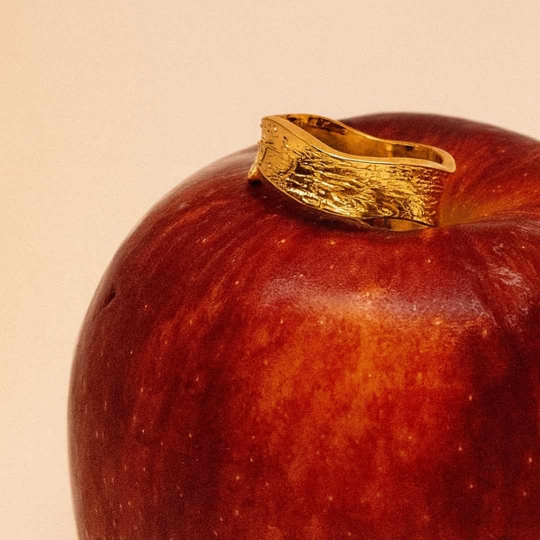 A sleek and minimalistic gold-toned ring with a gently contoured surface, radiating timeless elegance.