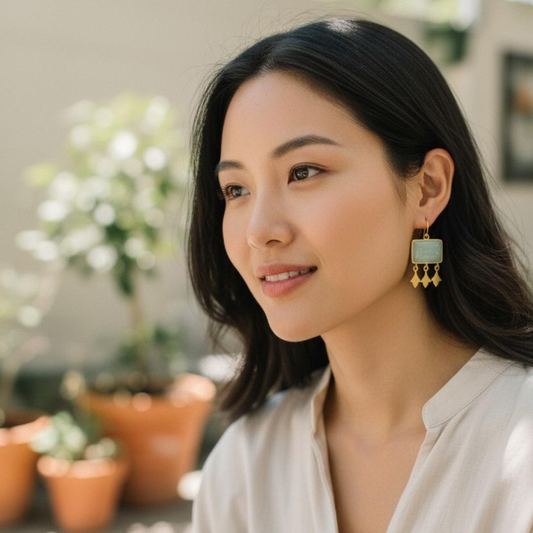 A dash of green, a golden swing—crafted in 925 silver for everyday glow. #925SilverStyle #ChevronCharm #GreenGleam #ModernJewels
