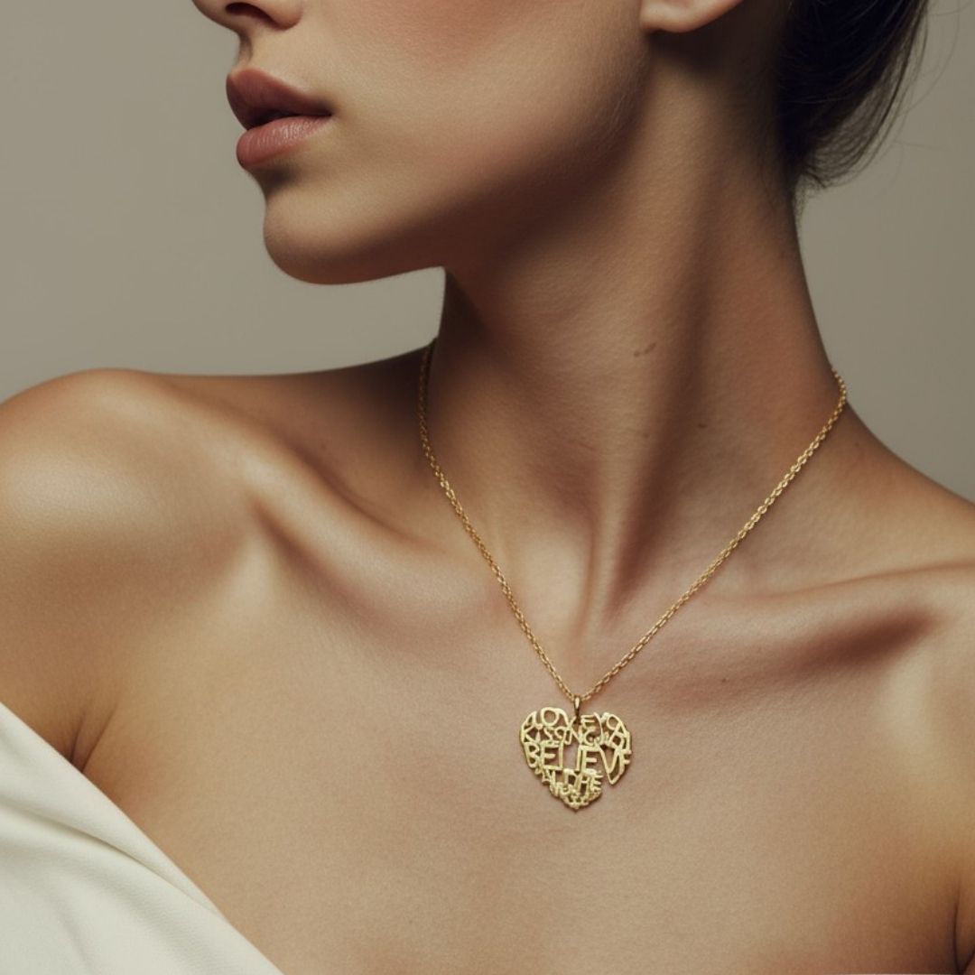 This heart pendant blends intricate craftsmanship with modern elegance. A gentle statement of love and style.
