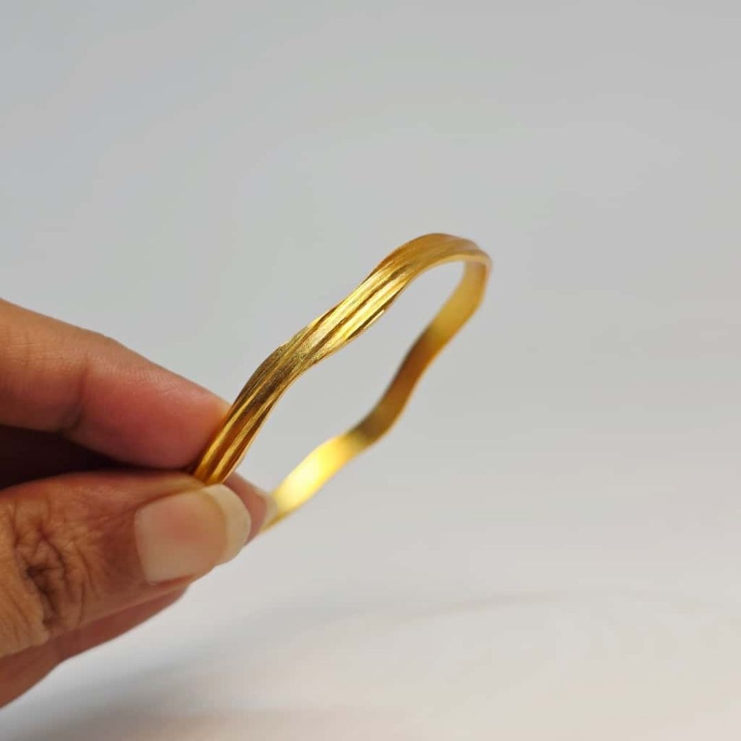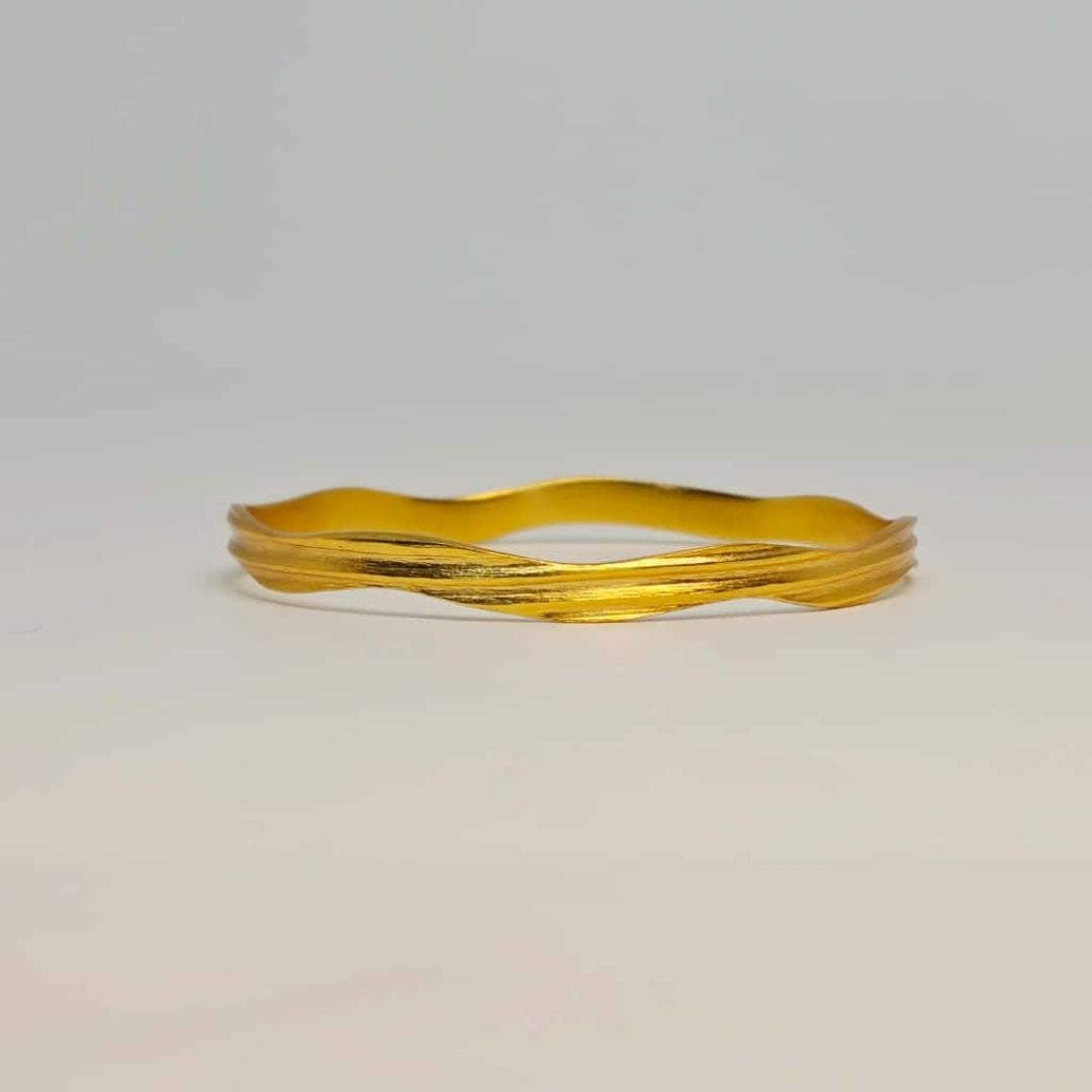 A soft gold bangle with a delicate, handcrafted feel—slightly imperfect, beautifully real. Lightweight and easy to wear, it’s that one piece that quietly completes your everyday look.
