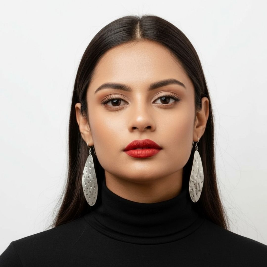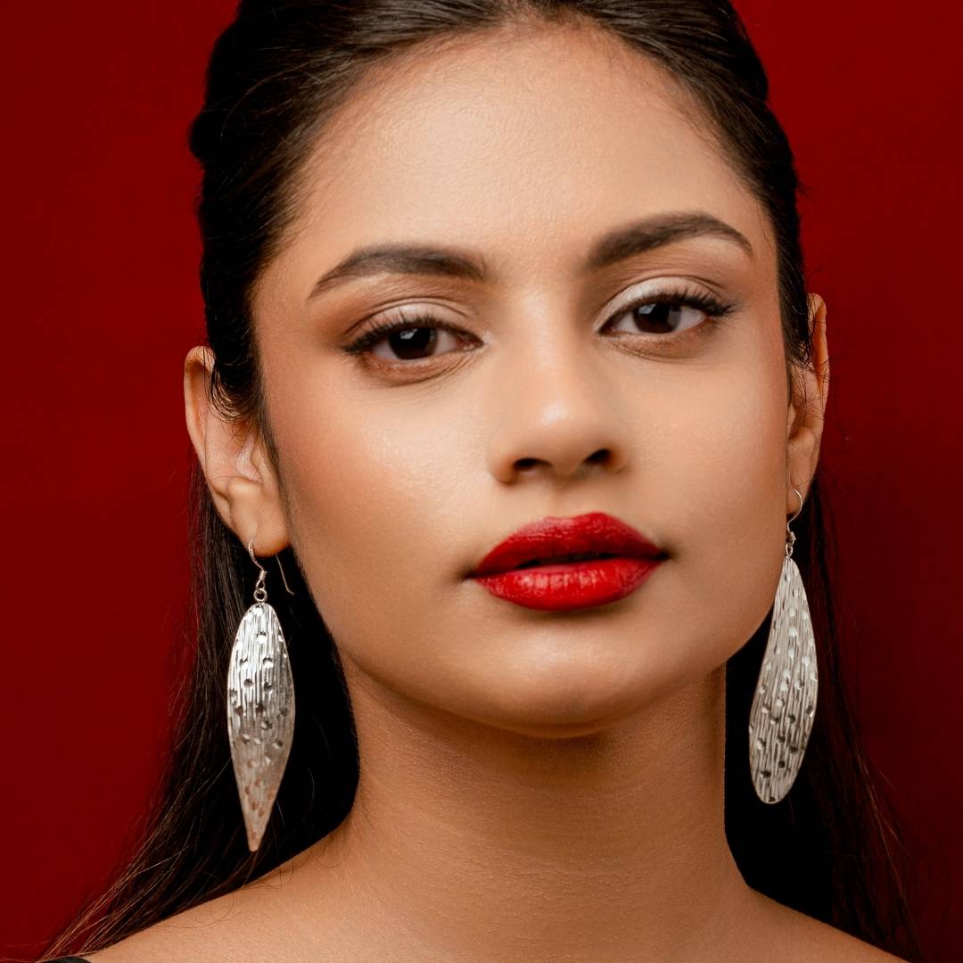 Elongated leaf-shaped earrings in hammered silver—lightweight, graceful, and designed for effortless elegance