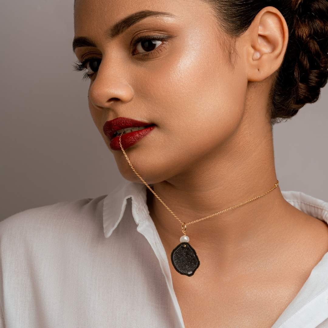 "Unpolished, untamed, unforgettable. A raw stone pendant in 925 silver – made for those who glow differently."