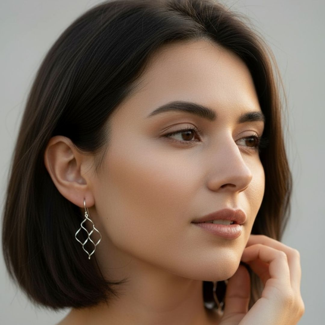 these earrings feature a cascade of twisted diamond shapes that shimmer with every movement. Lightweight yet striking, they offer a sculptural elegance that’s both modern and timeless.