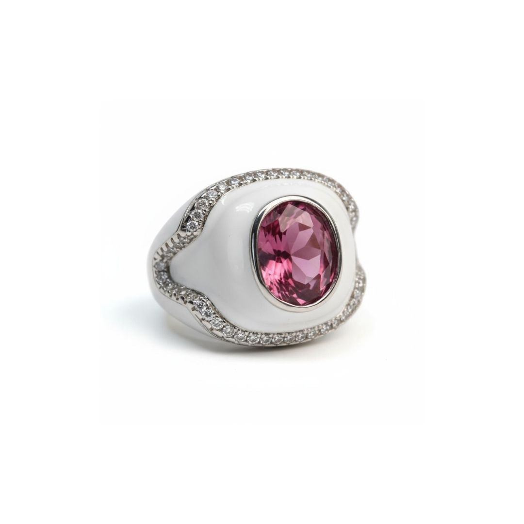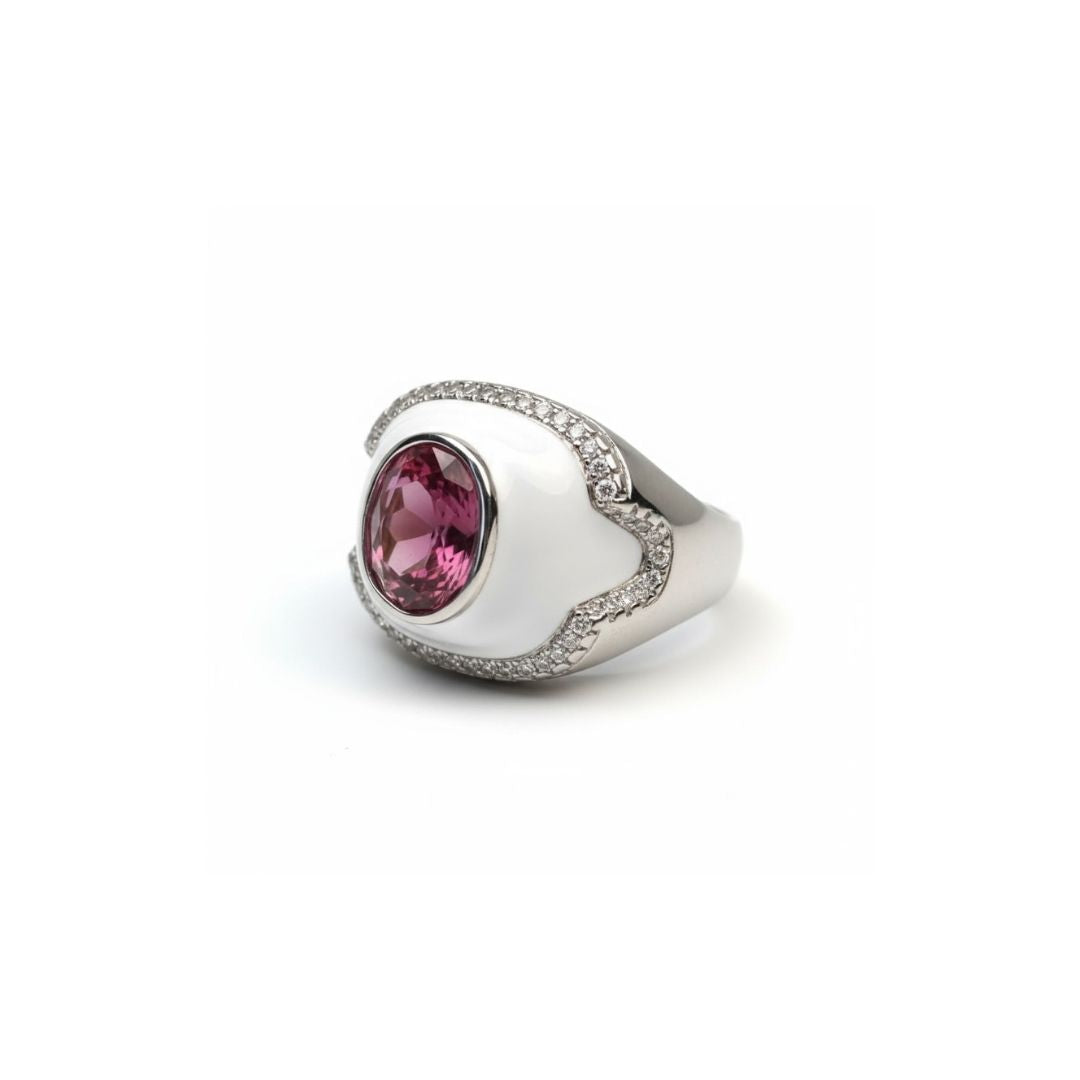 A single red gemstone takes center stage in this 92.5 sterling silver ring. Its faceted brilliance and clean setting create a timeless piece—bold, refined, and effortlessly elegant.